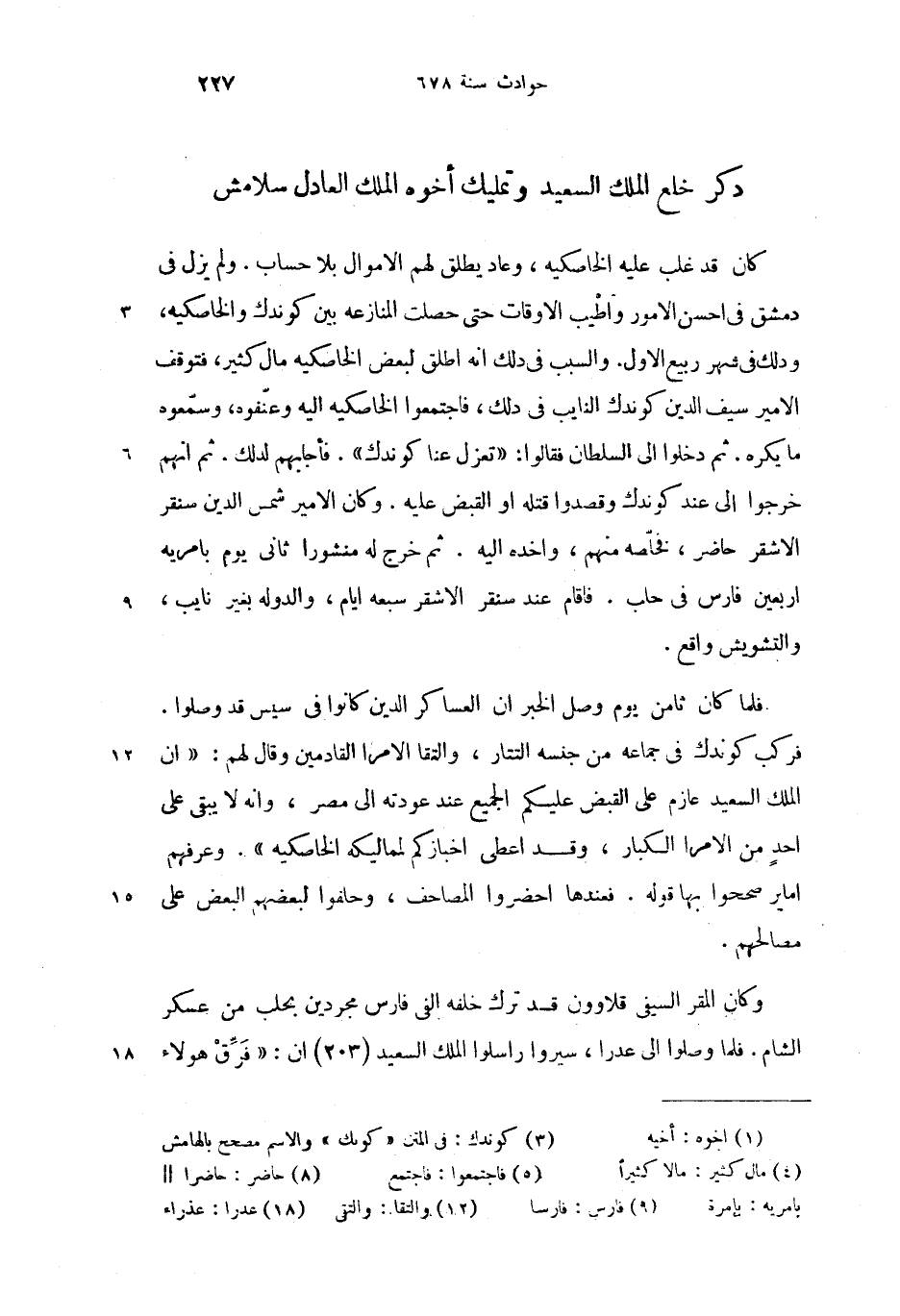 وكان المقر السيفى قلاوون قد ترك خلفه الفى فارس مجردين بحلب من عسكر الشام. فلما وصلوا الى عدرا (18)، سيروا راسلوا الملك السعيد (203) ان: «فرّق هولاء