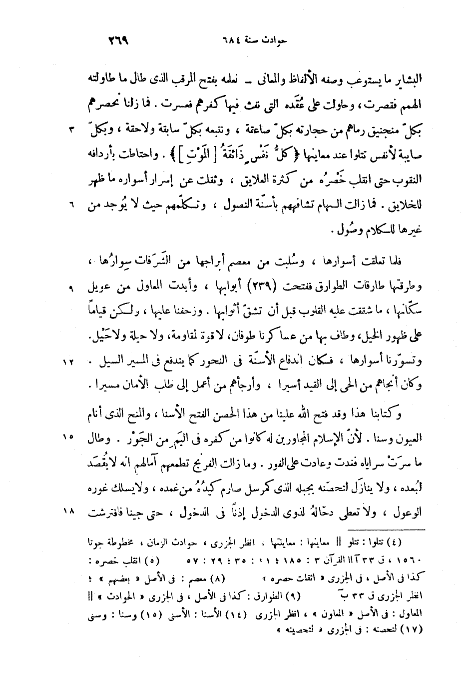 (4) تتلوا: تتلو--معاينها: معاينتها. انظر الجزرى، حوادث الزمان، مخطوطة جوتا 1560، ق 33 آ--القرآن 3:185؛21:35؛29:57