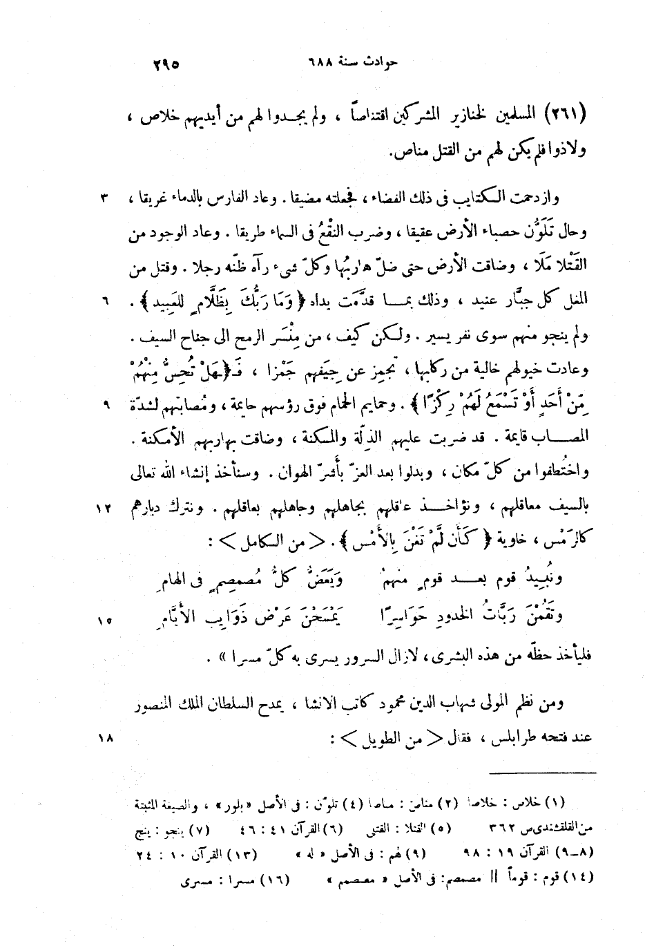 ومن نظم المولى شهاب الدين محمود كاتب الانشا، يمدح السلطان الملك المنصور عند فتحه طرابلس، فقال <من الطويل>: