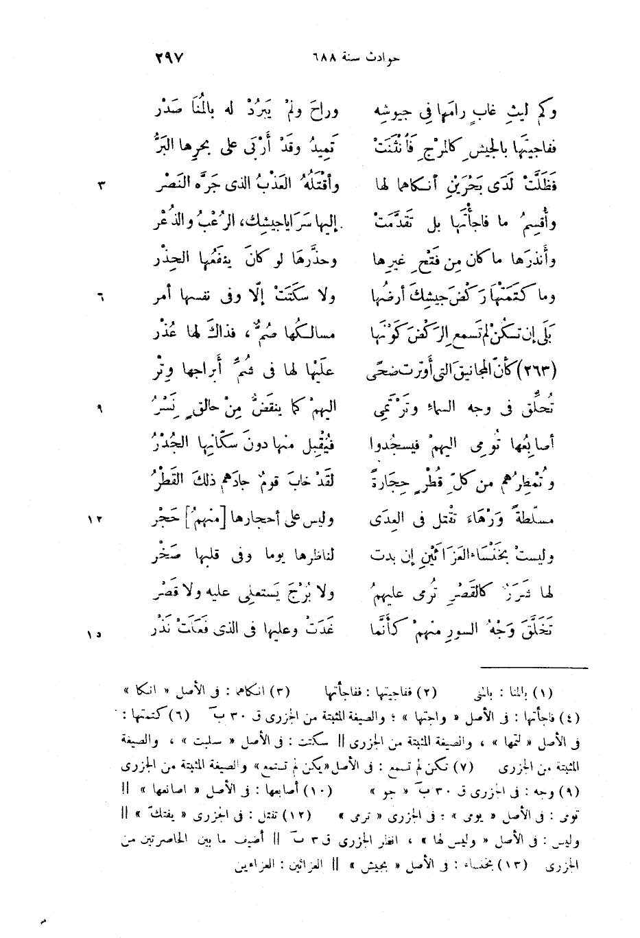 (263) كأنّ المجانيق التى أوترت ضحى … عليها لها فى شمّ أبراجها وتر