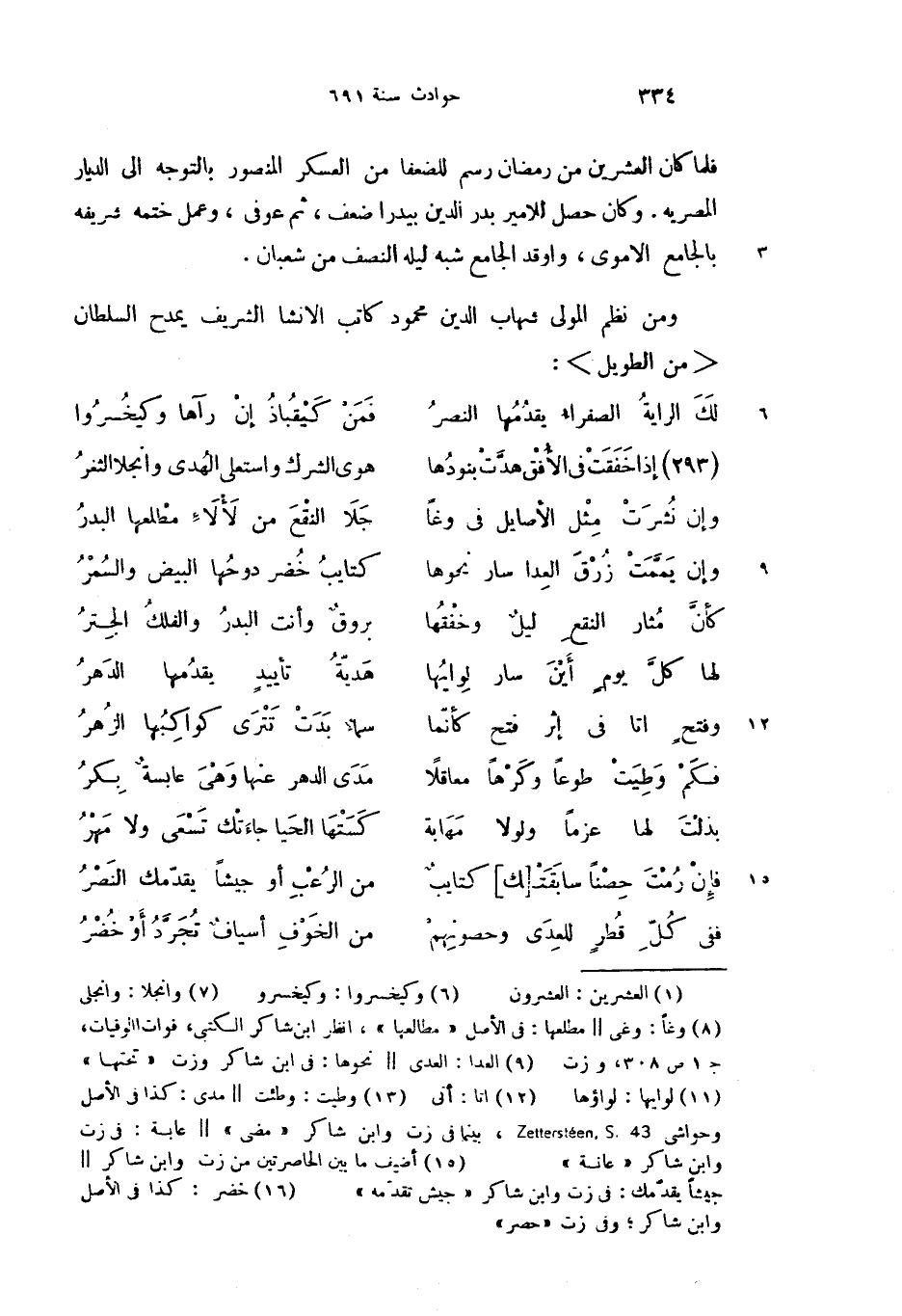 (8) وغا: وغى--مطلعها: فى الأصل «مطالعها»، انظر ابن شاكر الكتبى، فوات الوفيات، ج 1 ص 308، وز ت