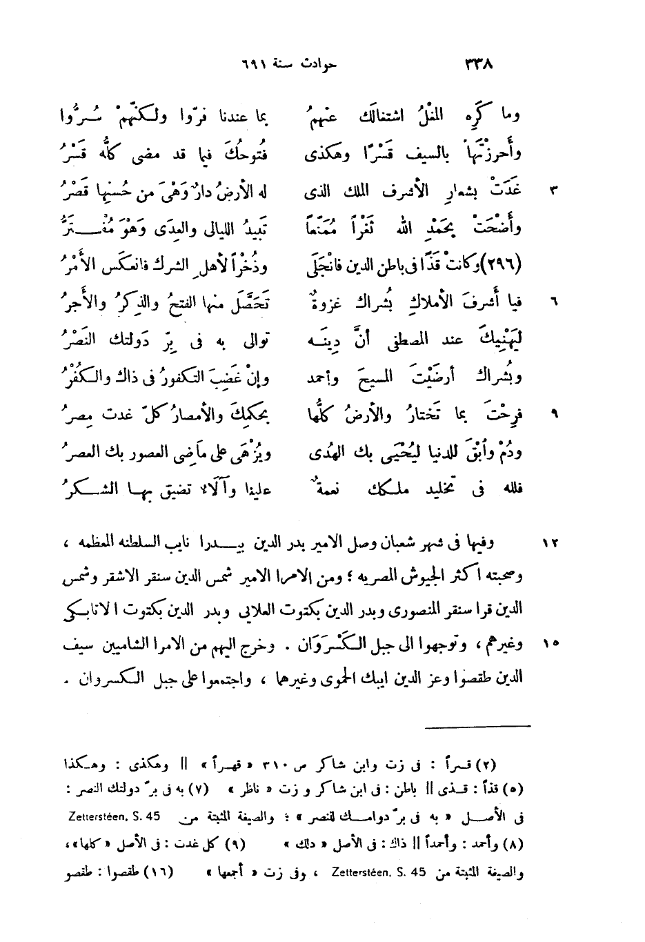 (7) به فى برّ دولتك النصر: فى الأصل «به فى برّ دوامك للنصر»؛ والصيغة المثبتة من Zettersteen,S .54