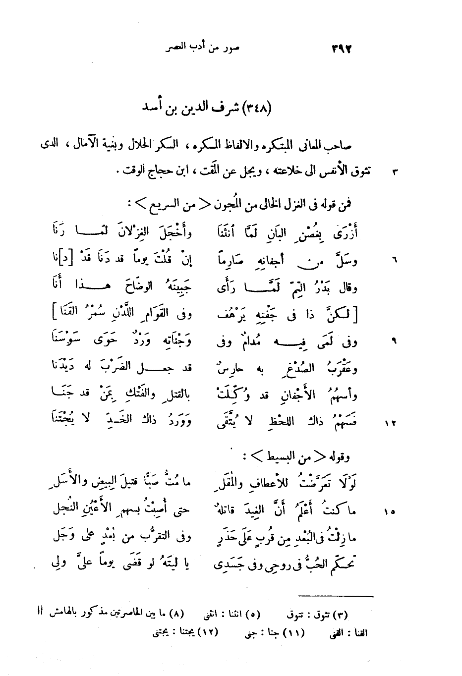 [لكنّ ذا فى جفنه يرهف … وفى القوام اللّدن سمر القنا] (8)