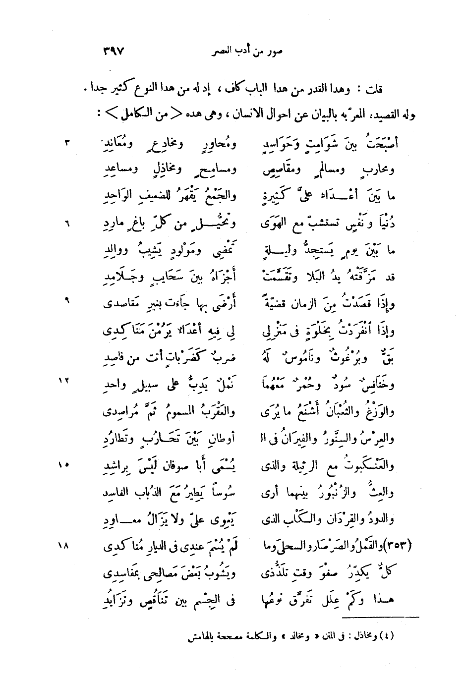 وله القصيده المعرّبه بالبيان عن احوال الانسان، وهى هده <من الكامل>: