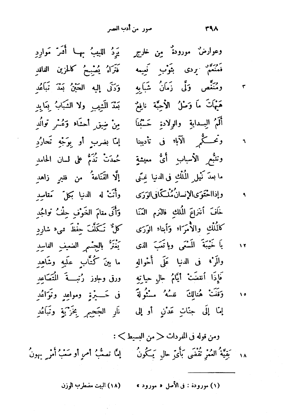 (18) البيت مضطرب الوزن