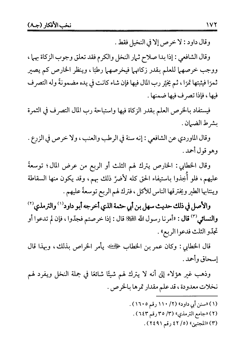 قال الخطابي: وكان عمر بن الخطاب - رضي الله عنه - يأمر الخراص بذلك، وبهذا قال إسحاق وأحمد.