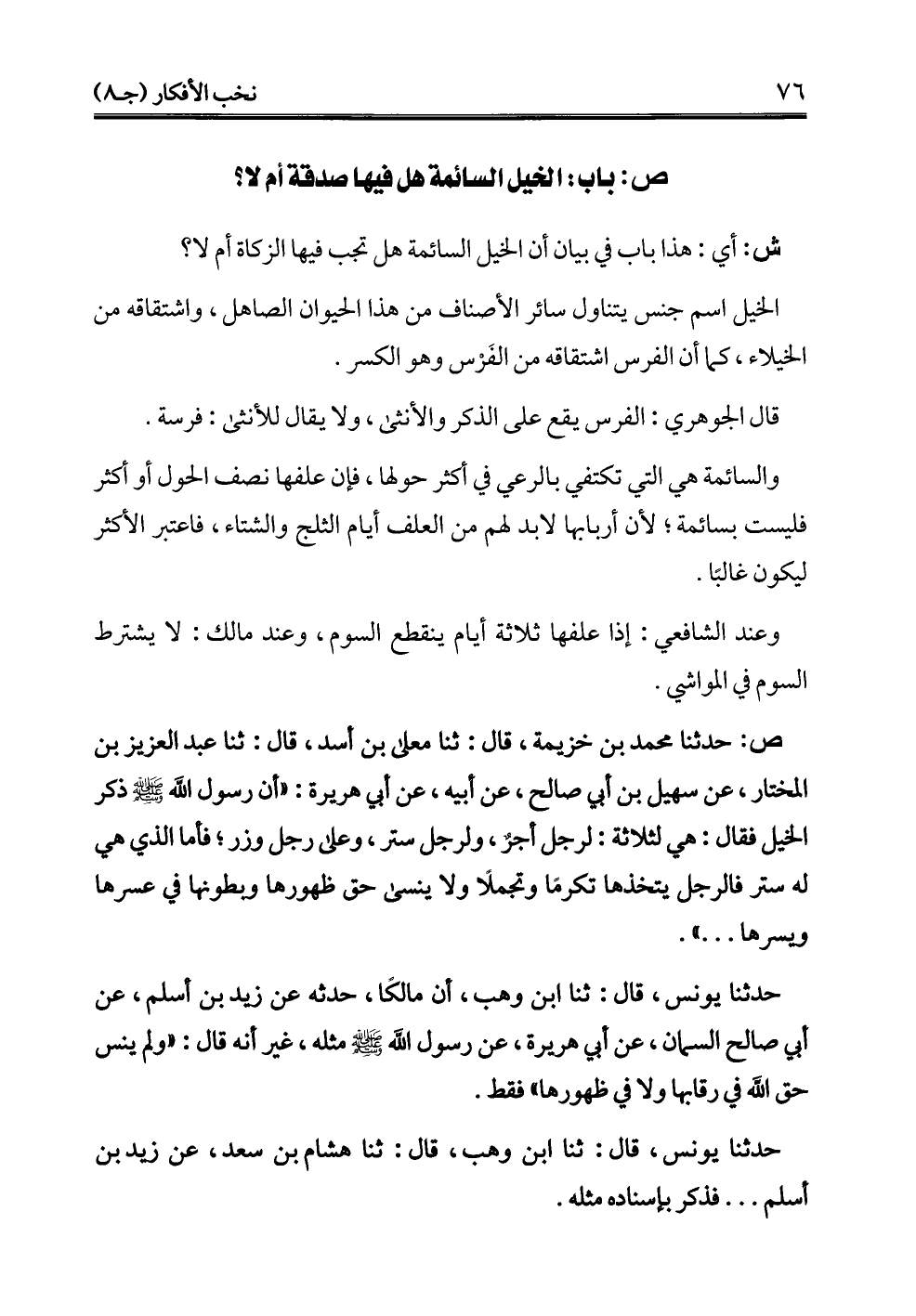 ص: باب: الخيل السائمة هل فيها صدقة أم لا؟