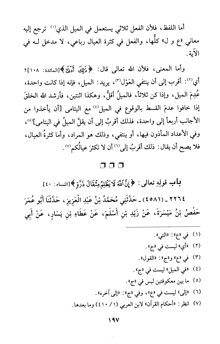 أما اللفظ، فلأن الفعل ثلاثي يستعمل في الميل الذي (¬1) ترجع إليه معاني "ع ول" كلُّها، والفعل في كثرة العيال رباعي، لا مدخل له في الآية.