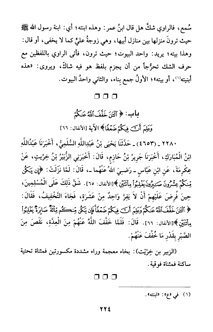 سُمع، فالراوي شكَّ هل قال ابنُ عمر: وهذه ابنته؛ أي: ابنة رسول الله - صلى الله عليه وسلم - حيث ترونَ منزلها بين منازل أبيها، وهي زوجةُ عليٍّ كما لا يخفى، أو قال: وهذا بيته؛ يريد: واحد البيوت؛ حيث ترون، فأتى الراوي باللفظين مع حرف الشك تحرُّجًا من أن يجزم بلفظ هو فيه شاكّ، ويروى: "هذه أبنيته (¬1)، أو بيته"؛ الأولُ جمع بِناء، والثاني واحدُ البيوت.