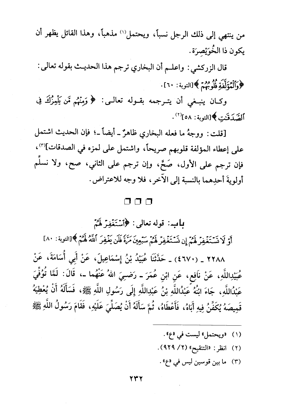قال الزركشي: واعلم أن البخاري ترجم هذا الحديث بقوله تعالى: {وَالْمُؤَلَّفَةِ قُلُوبُهُمْ} [التوبة: 60].