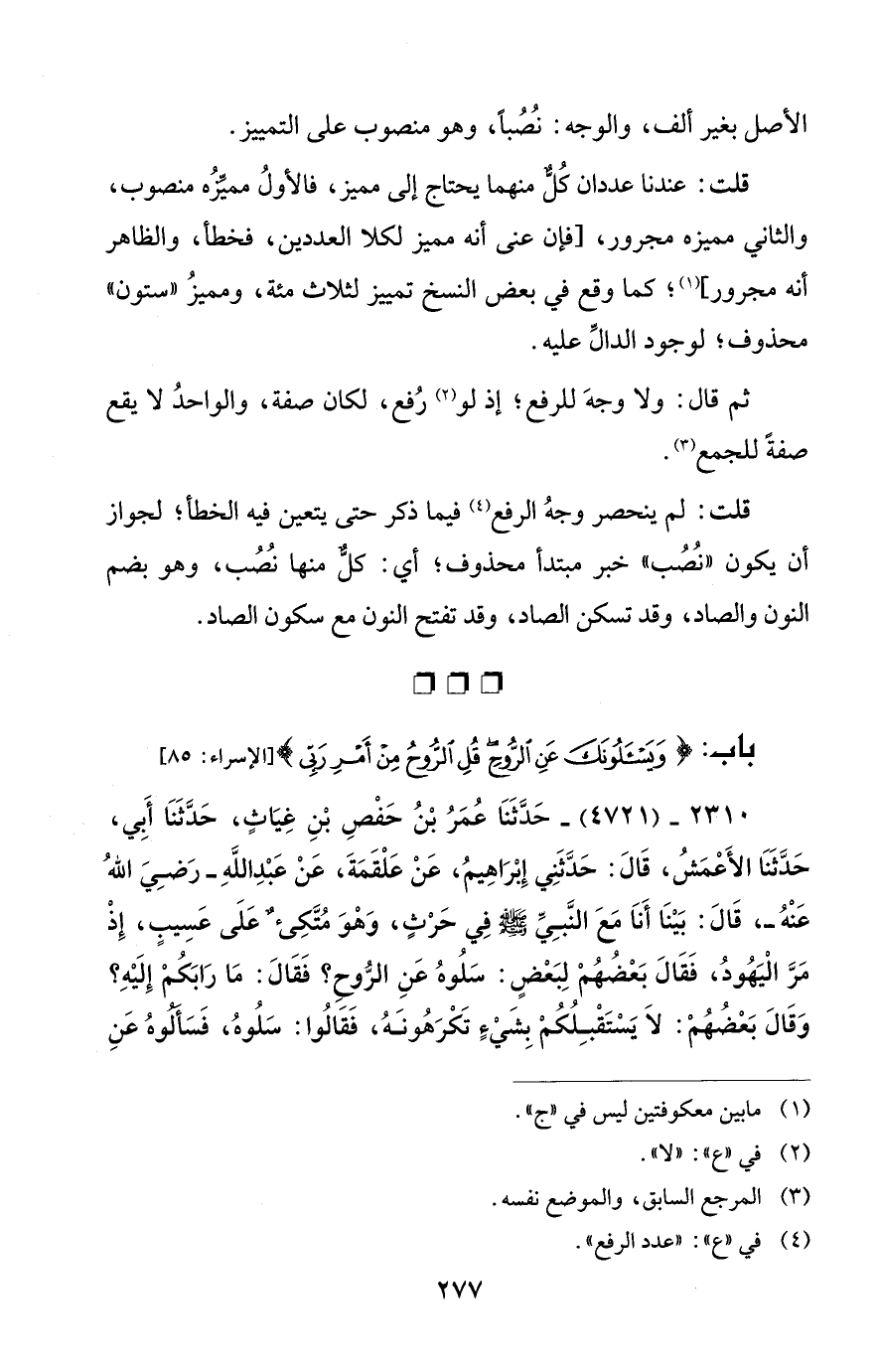 باب: {وَيَسْأَلُونَكَ عَنِ الرُّوحِ قُلِ الرُّوحُ مِنْ أَمْرِ رَبِّي} [الإسراء: 85]