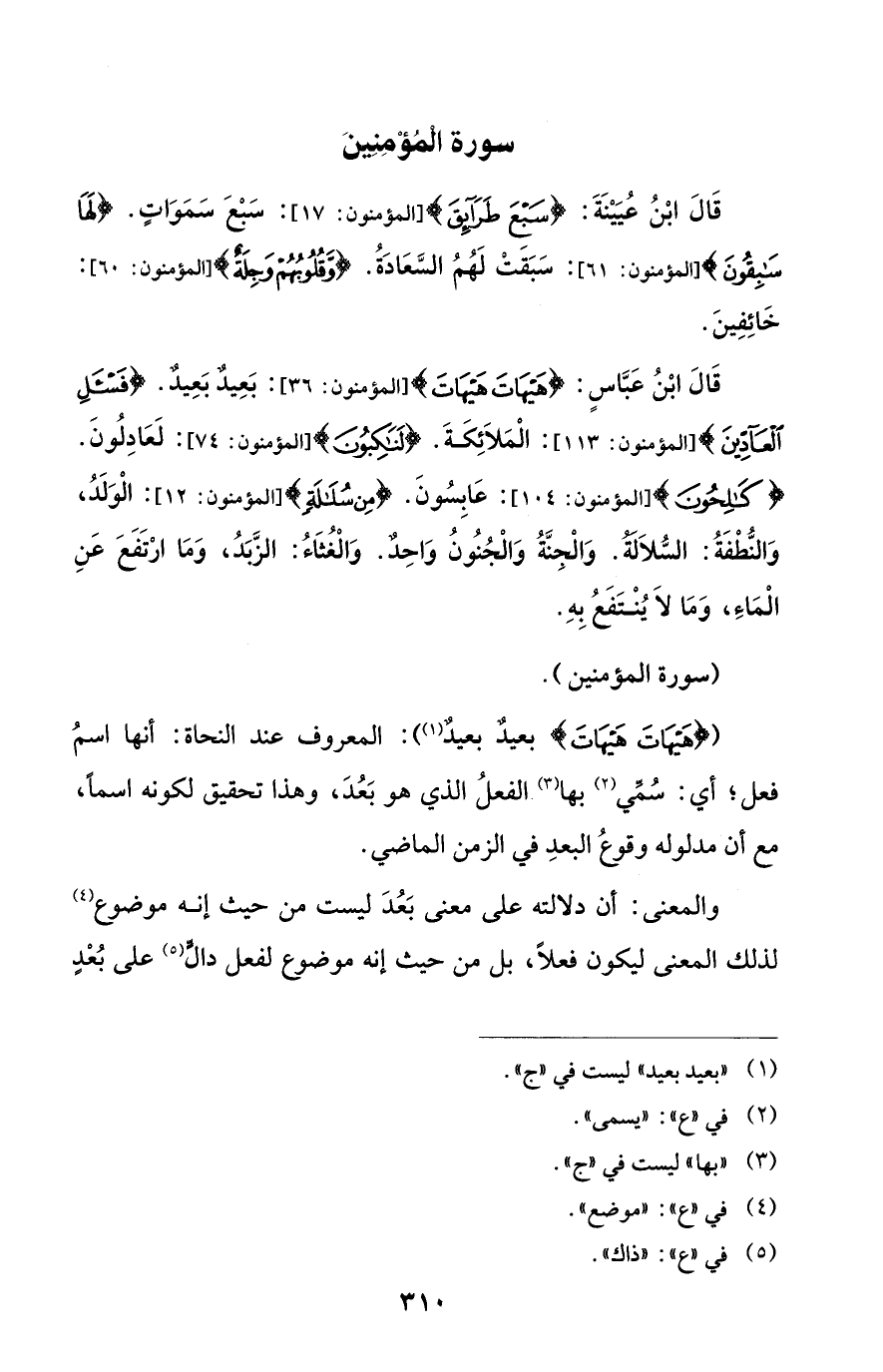 ({هَيْهَاتَ هَيْهَاتَ} بعيدٌ بعيدٌ (¬1)): المعروف عند النحاة: أنها اسمُ فعل؛ أي: سُمِّي (¬2) بها (¬3) الفعلُ الذي هو بَعُدَ، وهذا تحقيق لكونه اسمًا، مع أن مدلوله وقوعُ البعدِ في الزمن الماضي.