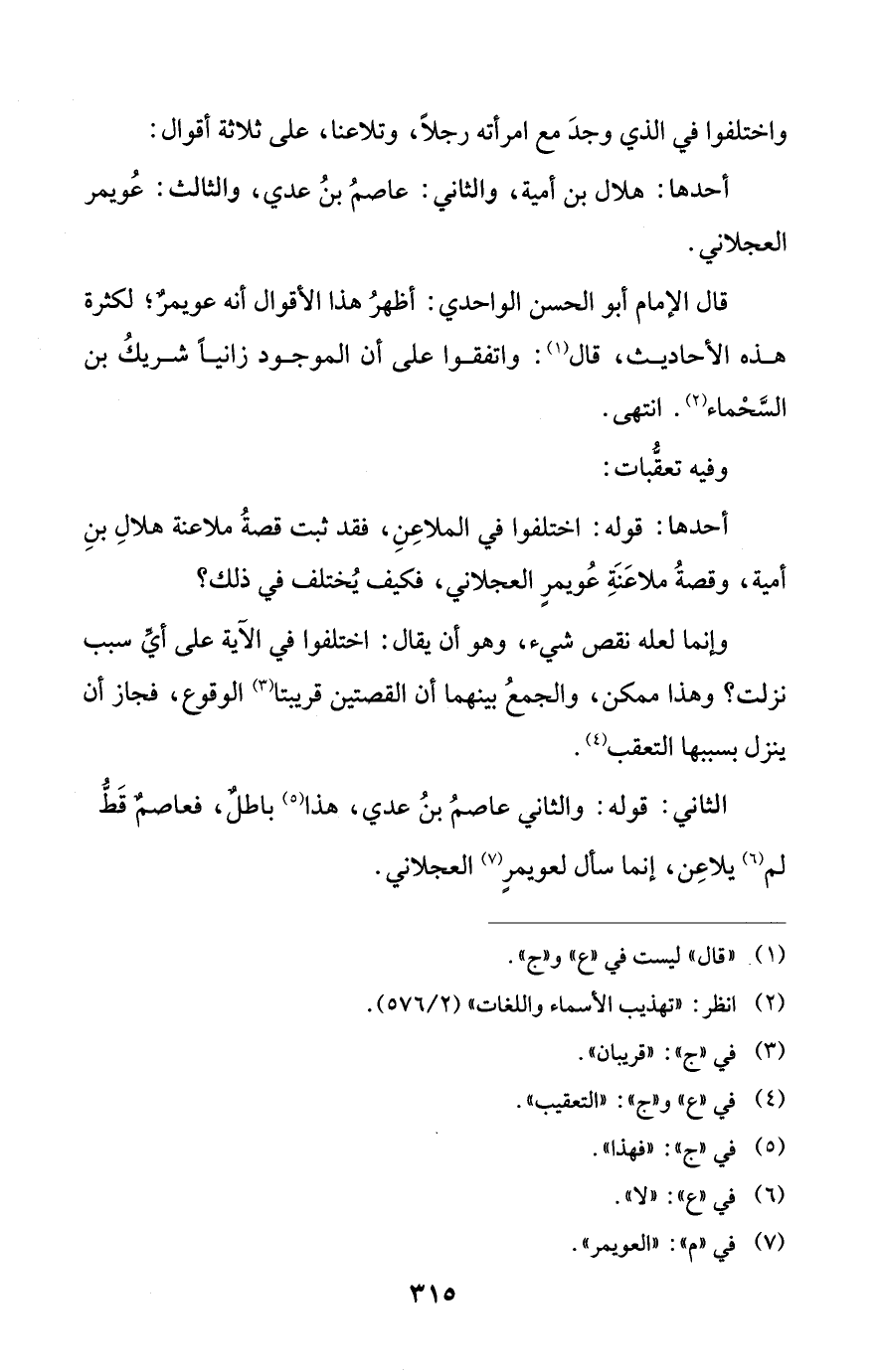 الثاني: قوله: والثاني عاصمُ بنُ عدي، هذا (¬5) باطلٌ، فعاصمٌ قَطُّ لم (¬6) يلاعِن، إنما سأل لعويمرٍ (¬7) العجلاني.