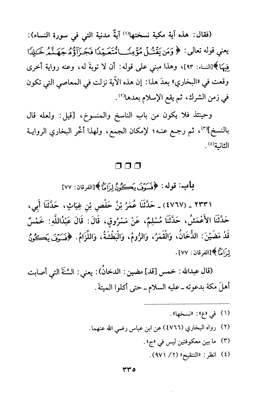 باب: قوله: {فَسَوْفَ يَكُونُ لِزَامًا} [الفرقان: 77]