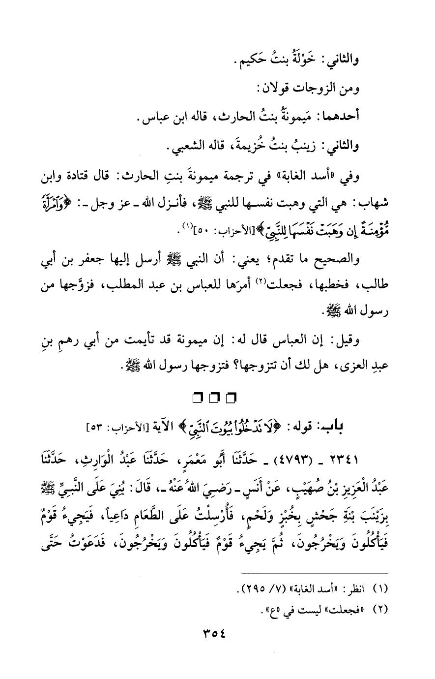 باب: قوله: {لَا تَدْخُلُوا بُيُوتَ النَّبِيِّ} الآية [الأحزاب: 53]