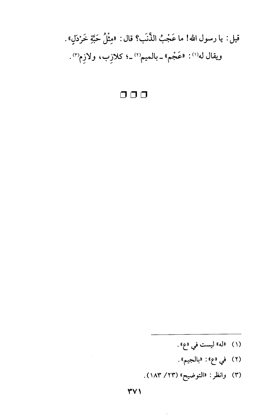 قيل: يا رسول الله! ما عَجْبُ الذَّنَب؟ قال: "مِثْلُ حَبَّةِ خَرْدَلٍ".