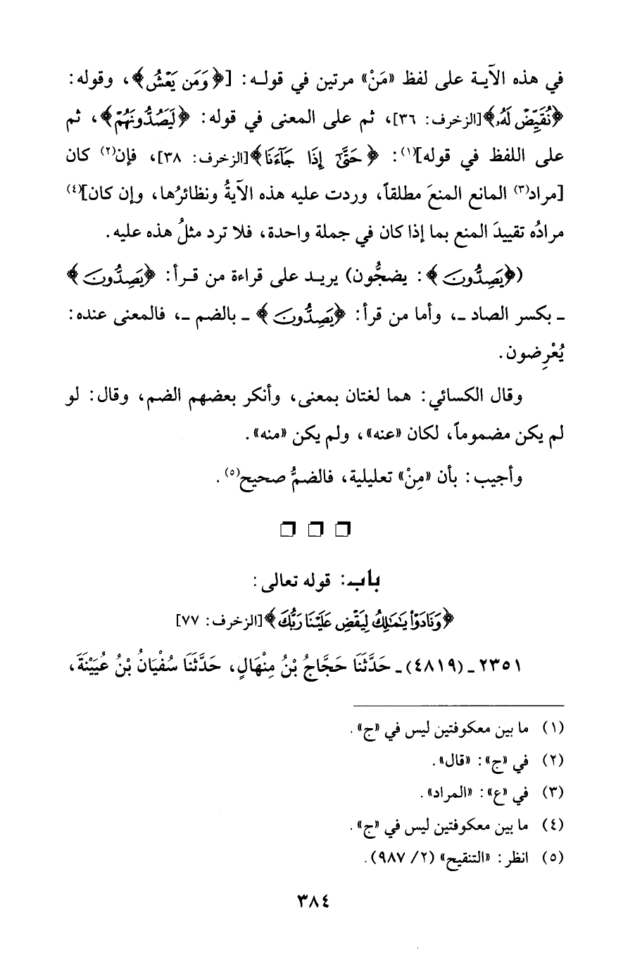 2351 - (4819) - حَدَّثَنَا حَجَّاجُ بْنُ مِنْهَالٍ، حَدَّثَنَا سُفْيَانُ بْنُ عُيَيْنَةَ،