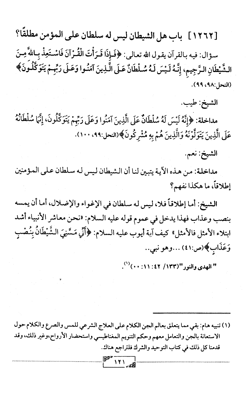 [1262] باب هل الشيطان ليس له سلطان على المؤمن مطلقًا؟