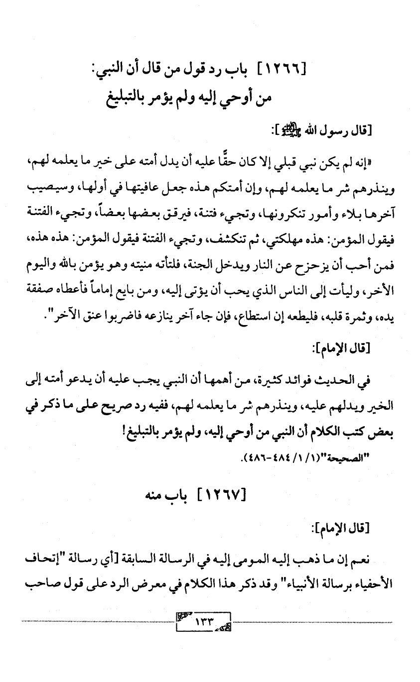 [1266] باب رد قول من قال أن النبي: من أوحي إليه ولم يؤمر بالتبليغ