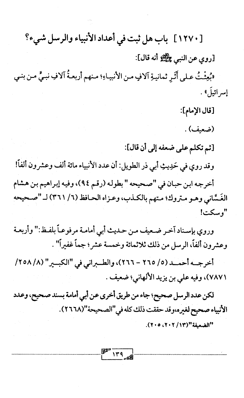 لكن عدد الرسل صحيح؛ جاء من طريق أخرى عن أبي أمامة بسند صحيح، وعدد الأنبياء صحيح لغيره، وقد حققت ذلك كله في"الصحيحة" (2668).