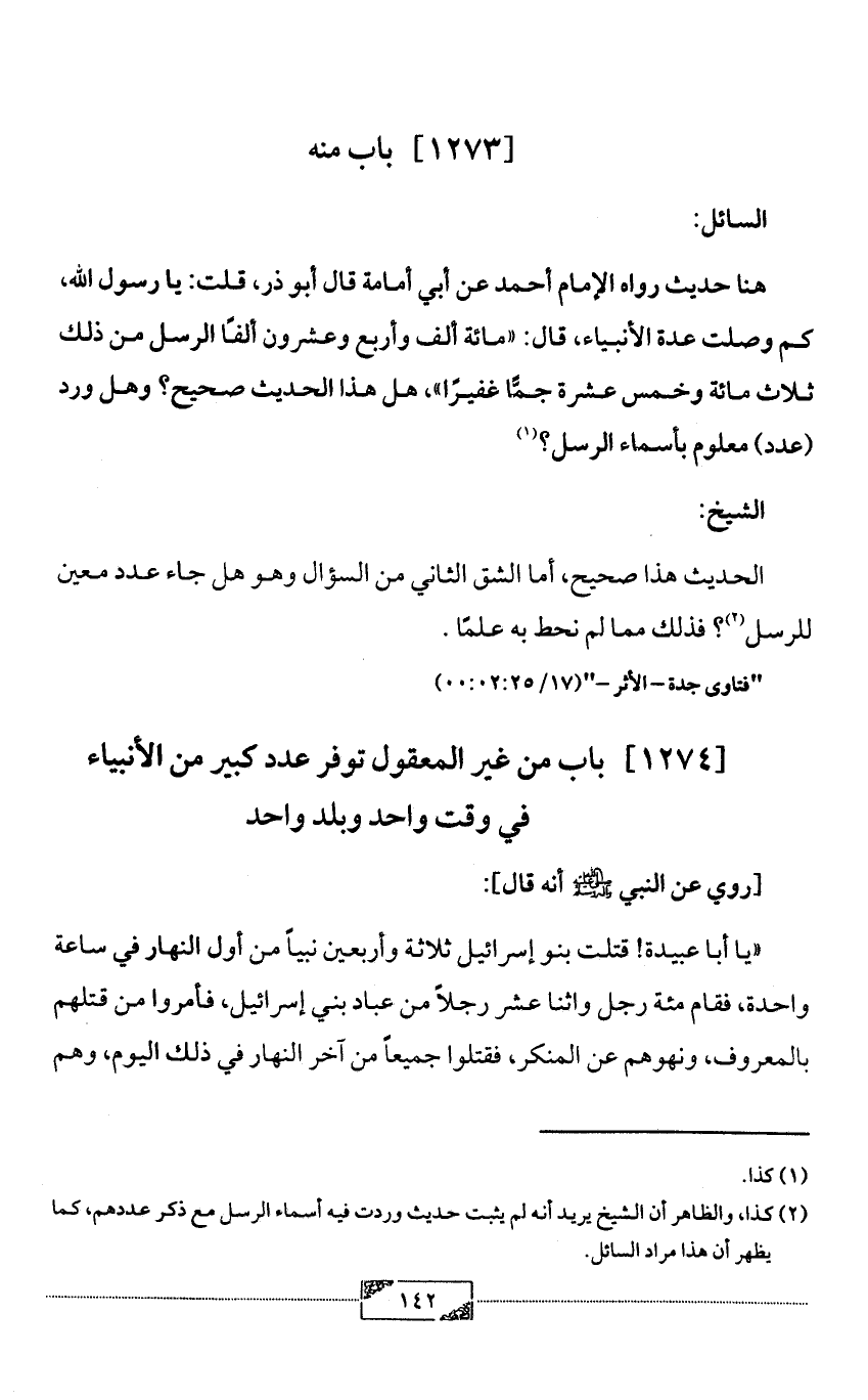 [1274] باب من غير المعقول توفر عدد كبير من الأنبياء