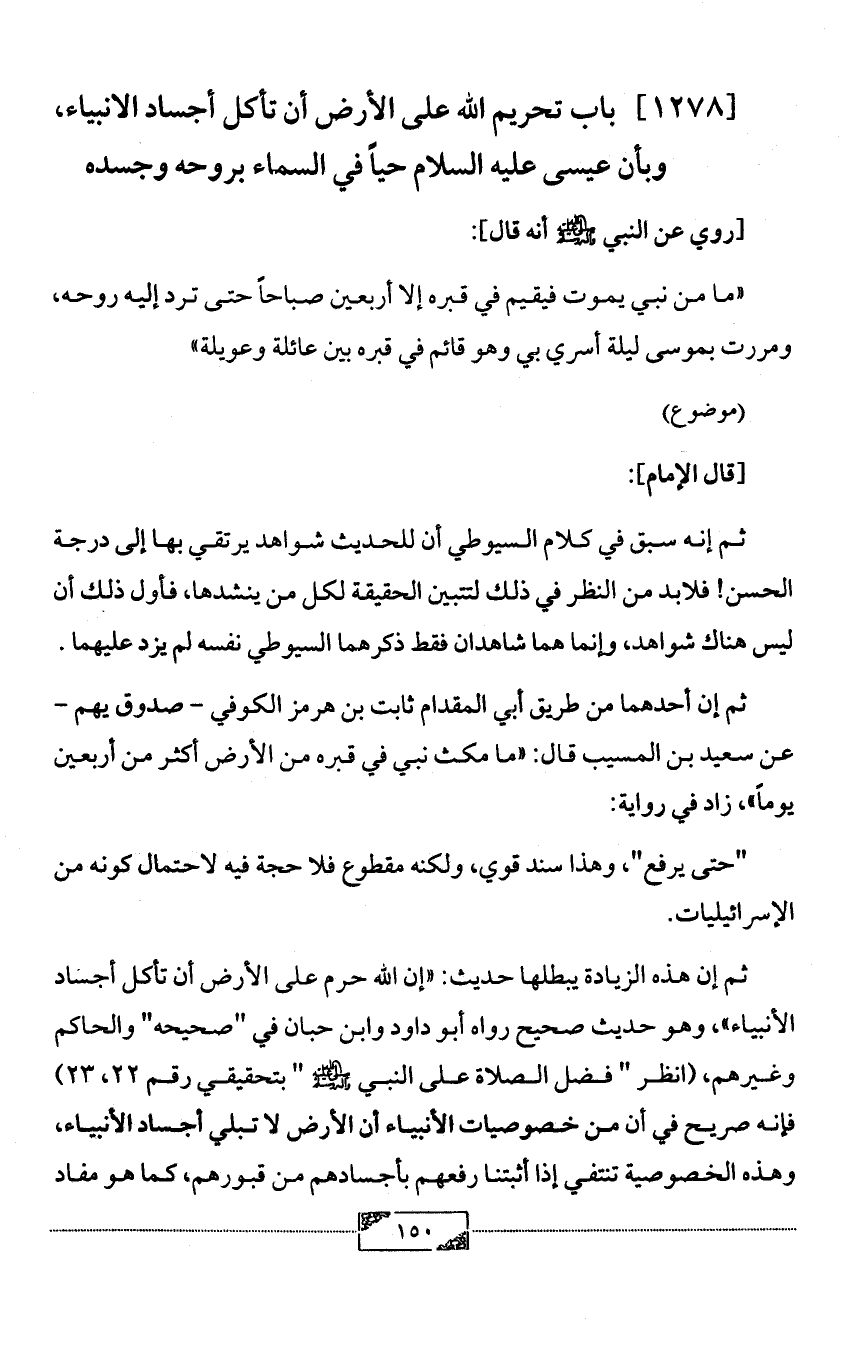 [1278] باب تحريم الله على الأرض أن تأكل أجساد الانبياء، وبأن عيسى عليه السلام حياً في السماء بروحه وجسده