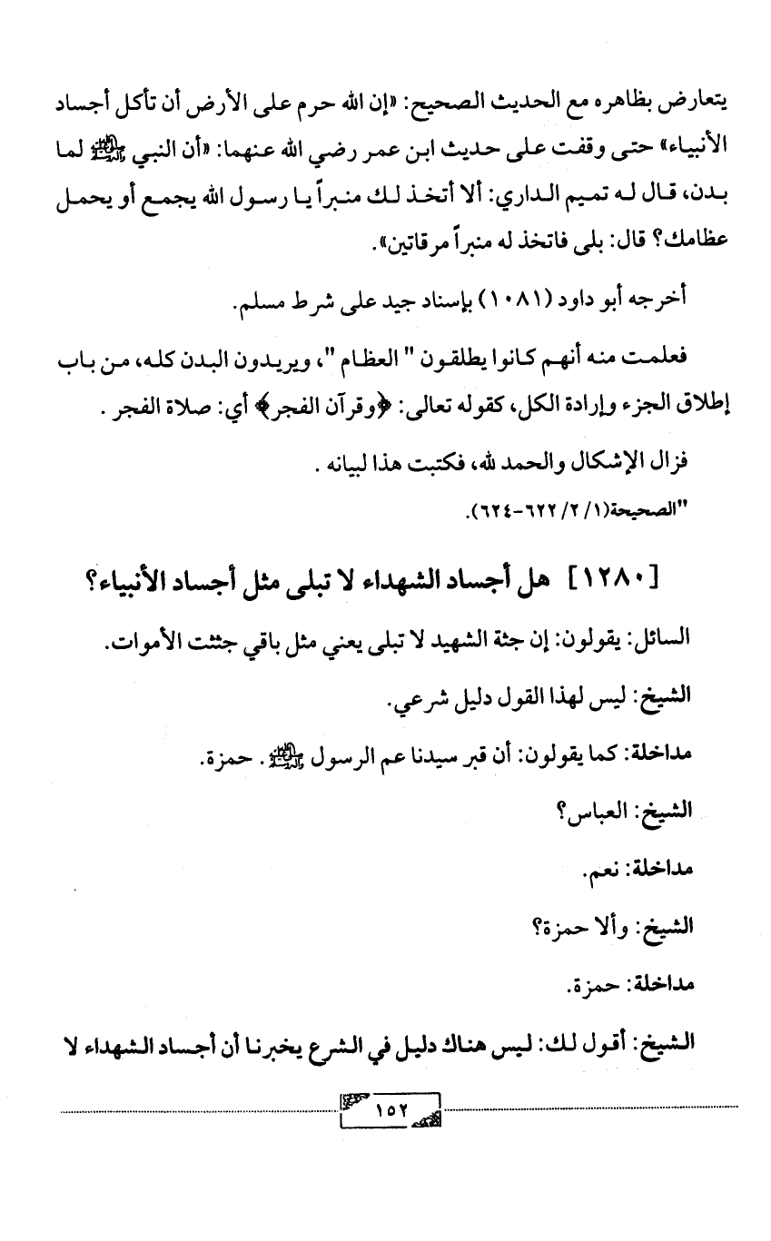 [1280] هل أجساد الشهداء لا تبلى مثل أجساد الأنبياء؟