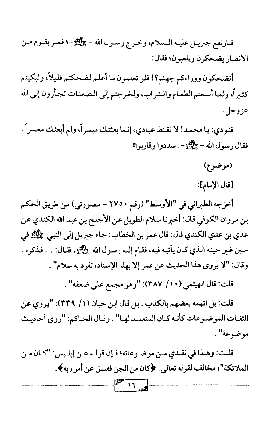 فنودي: يا محمد! لا تقنط عبادي، إنما بعثتك ميسراً، ولم أبعثك معسراً. فقال رسول الله - صلى الله عليه وآله وسلم -: سددوا وقاربوا»