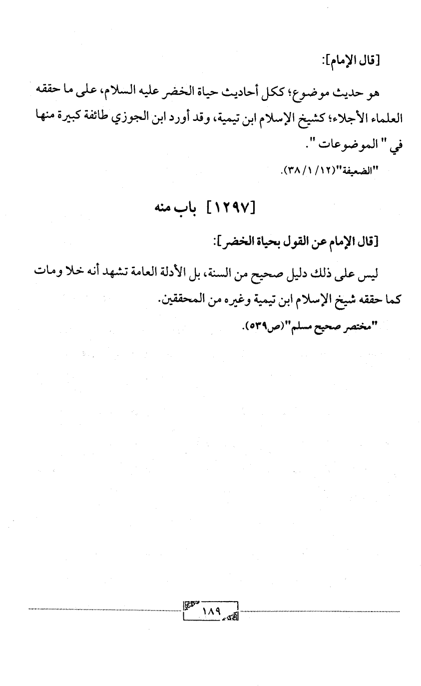 هو حديث موضوع؛ ككل أحاديث حياة الخضر عليه السلام، على ما حققه العلماء الأجلاء؛ كشيخ الإسلام ابن تيمية، وقد أورد ابن الجوزي طائفة كبيرة منها في " الموضوعات ".