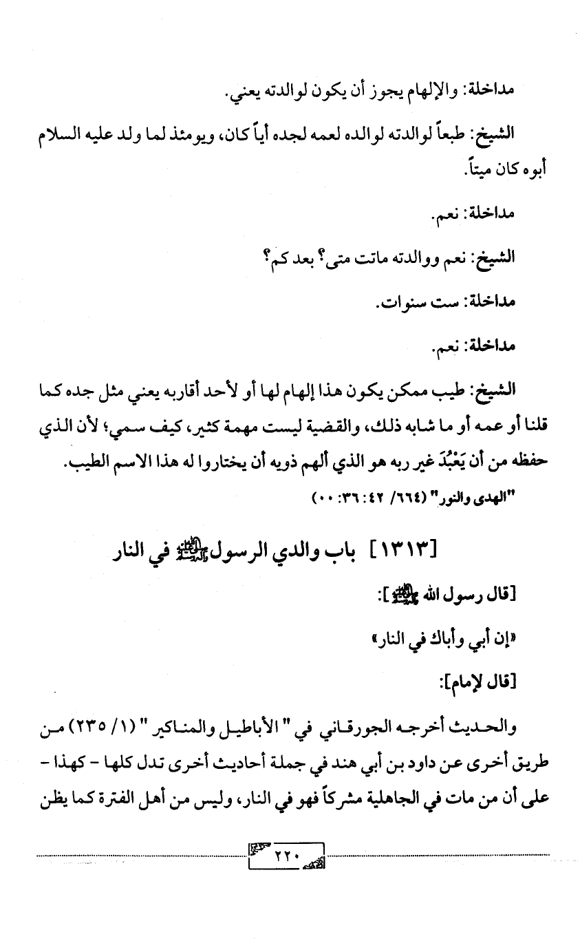 [1313] باب والدي الرسول - صلى الله عليه وآله وسلم - في النار