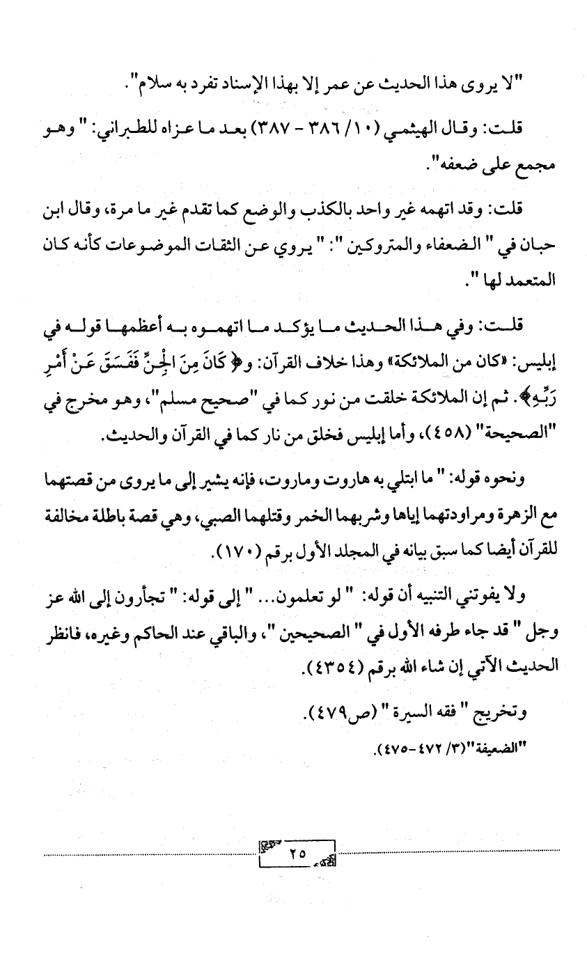 ونحوه قوله: " ما ابتلي به هاروت وماروت، فإنه يشير إلى ما يروى من قصتهما مع الزهرة ومراودتهما إياها وشربهما الخمر وقتلهما الصبي، وهي قصة باطلة مخالفة للقرآن أيضا كما سبق بيانه في المجلد الأول برقم (170).