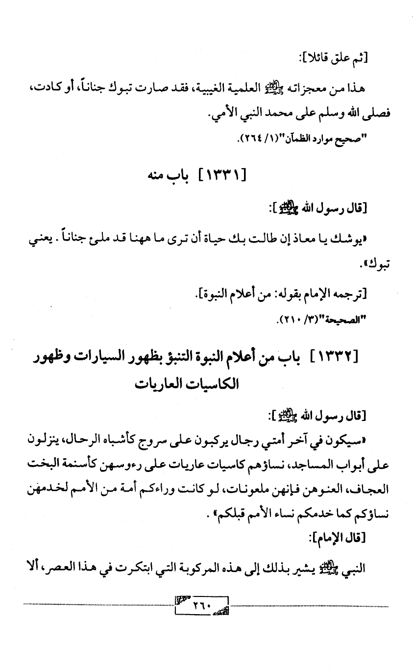 [1332] باب من أعلام النبوة التنبؤ بظهور السيارات وظهور الكاسيات العاريات
