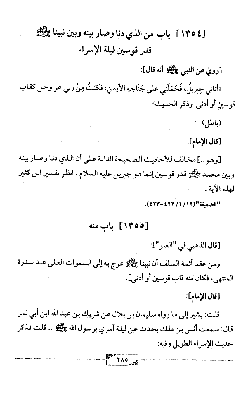 [1354] باب من الذي دنا وصار بينه وبين نبينا - صلى الله عليه وآله وسلم -