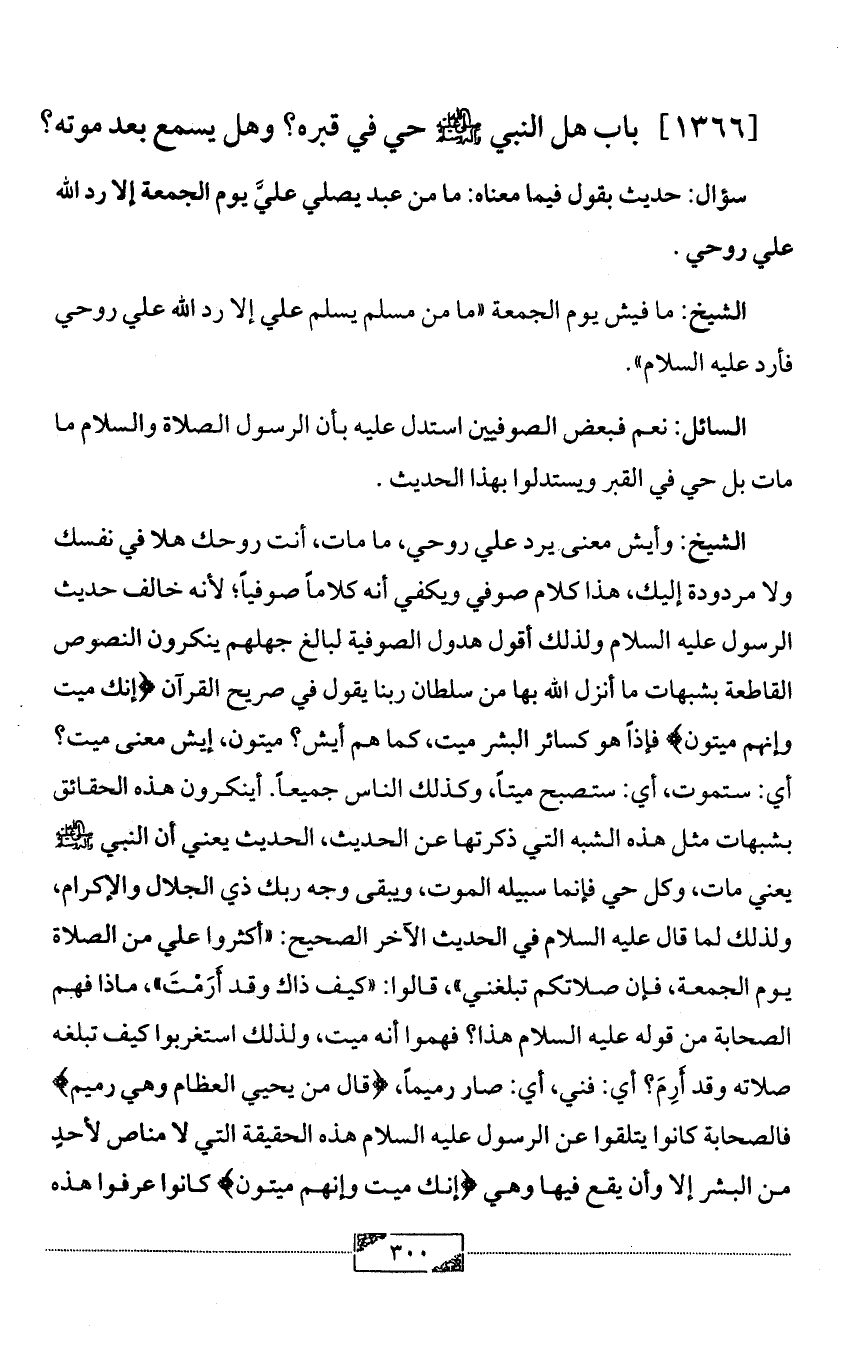 السائل: نعم فبعض الصوفيين استدل عليه بأن الرسول الصلاة والسلام ما مات بل حي في القبر ويستدلوا بهذا الحديث.