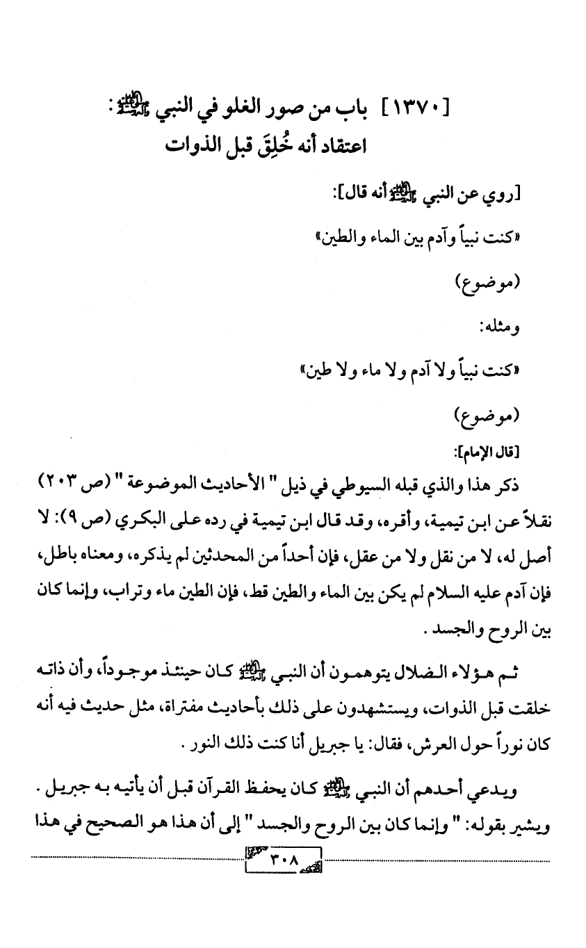 [1370] باب من صور الغلو في النبي - صلى الله عليه وآله وسلم -: اعتقاد أنه خُلِقَ قبل الذوات