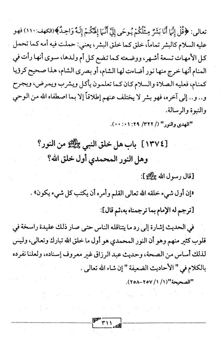 [1374] باب هل خلق النبي - صلى الله عليه وآله وسلم - من النور؟
