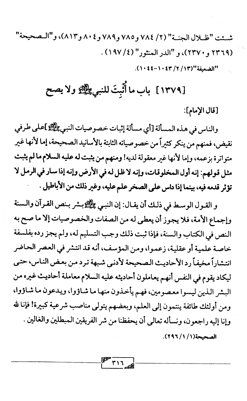 [1379] باب ما أُثْبِتَ للنبي - صلى الله عليه وآله وسلم - ولا يصح