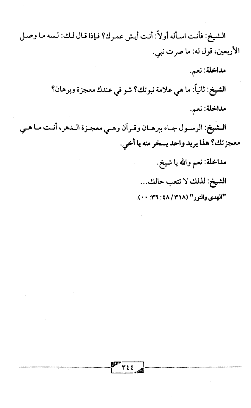 الشيخ: ثانياً: ما هي علامة نبوتك؟ شو في عندك معجزة وبرهان؟