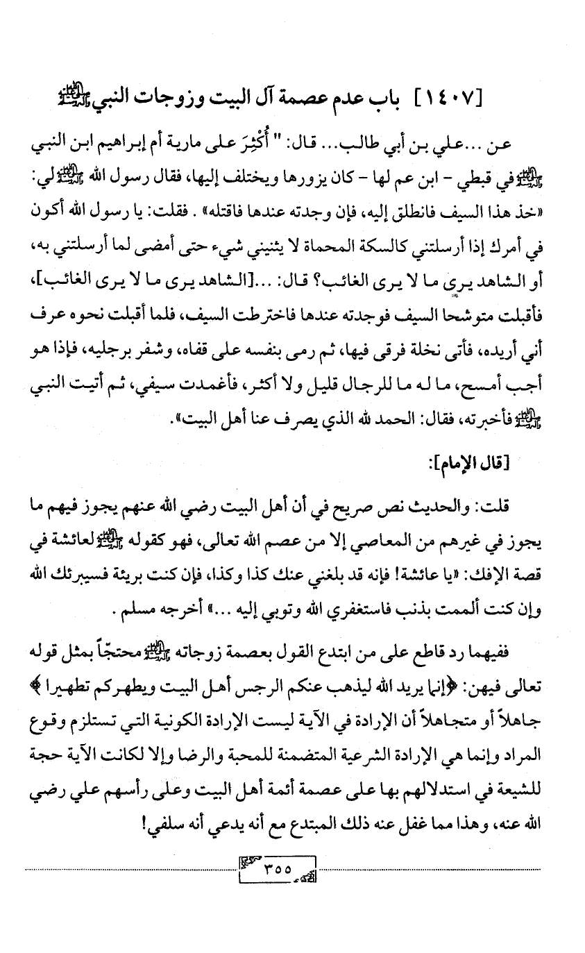 [1407] باب عدم عصمة آل البيت وزوجات النبي - صلى الله عليه وآله وسلم -