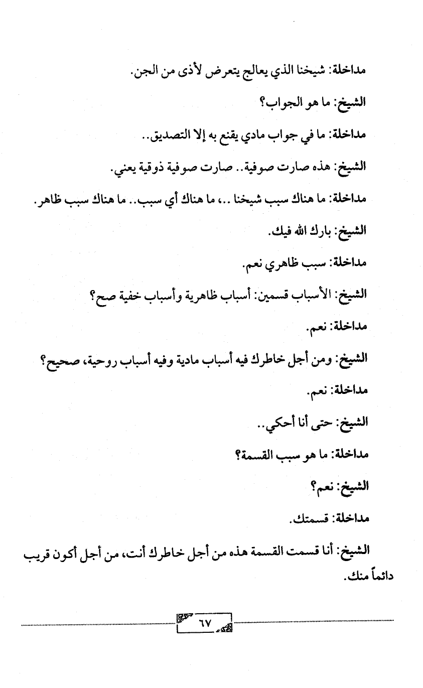 الشيخ: أنا قسمت القسمة هذه من أجل خاطرك أنت، من أجل أكون قريب دائماً منك.