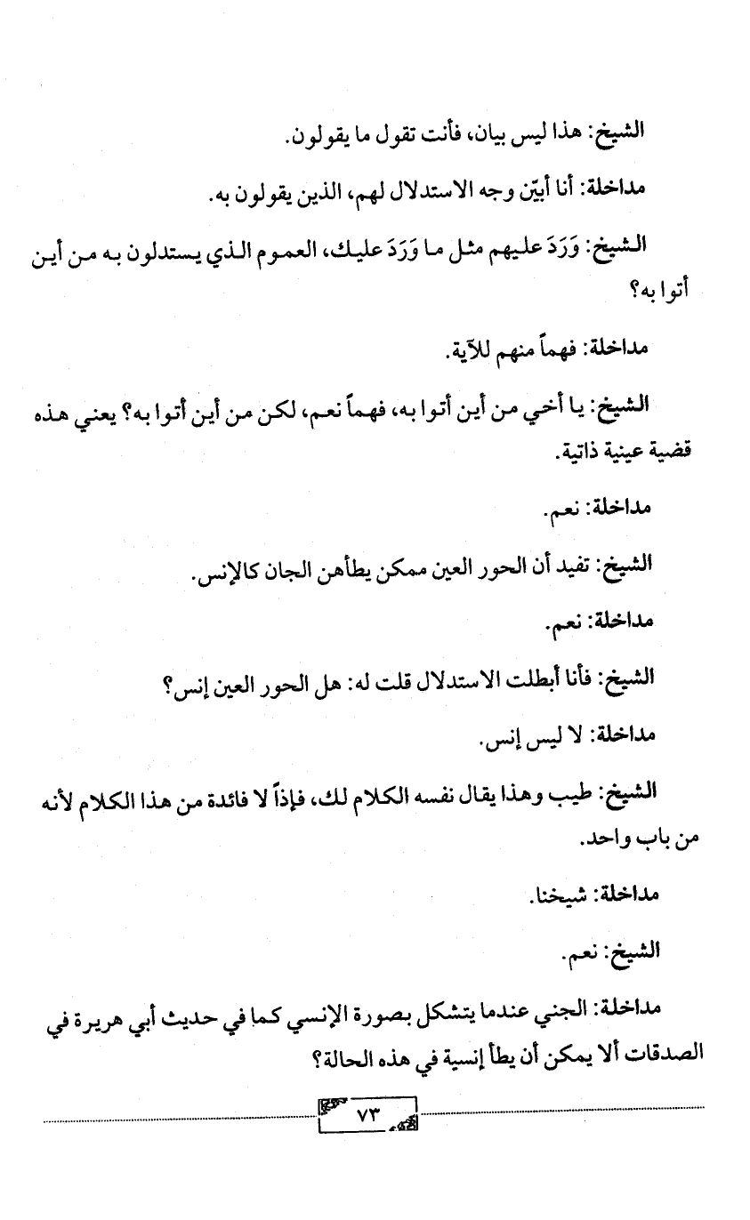الشيخ: فأنا أبطلت الاستدلال قلت له: هل الحور العين إنس؟