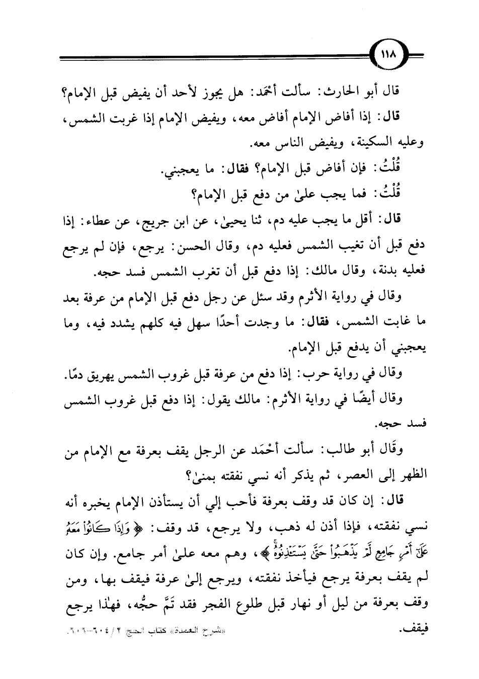 قال أبو الحارث: سألت أحْمَد: هل يجوز لأحد أن يفيض قبل الإمام؟