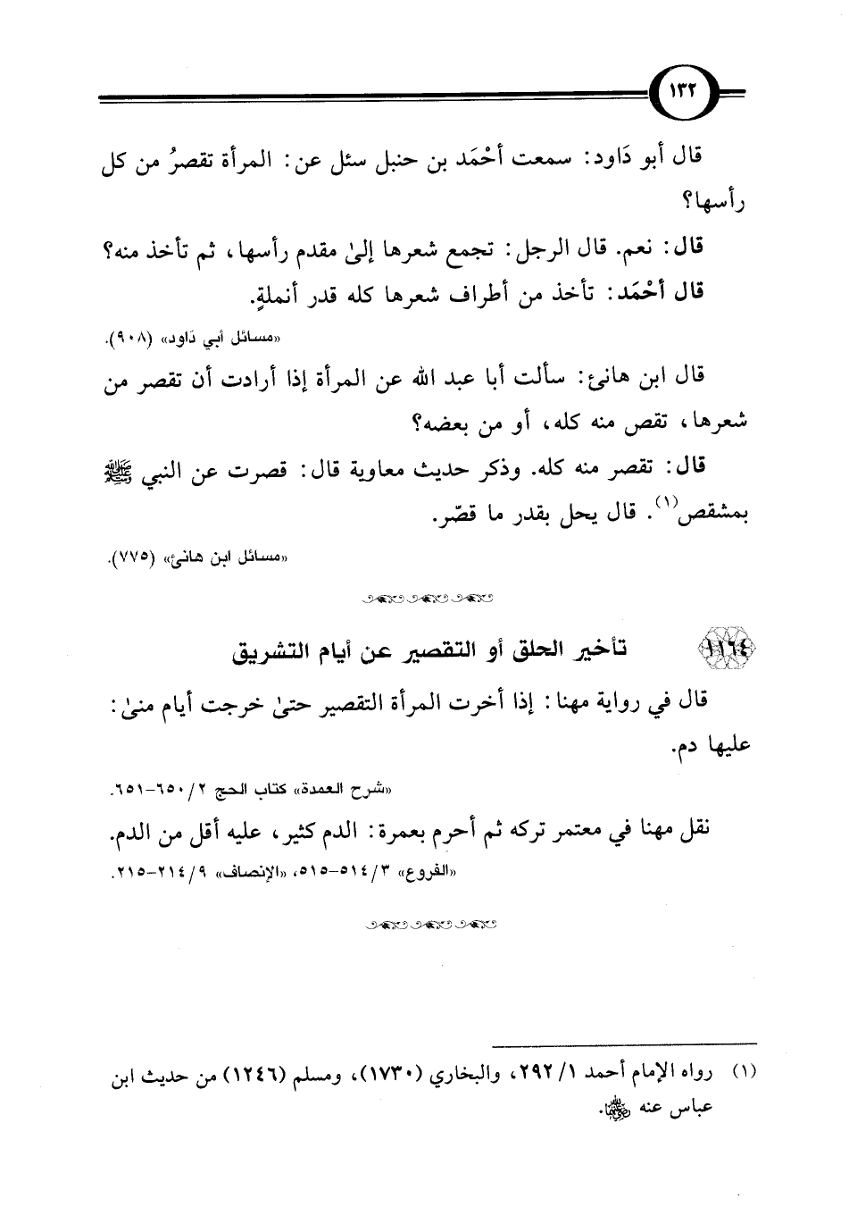 قال أبو داود: سمعت أحْمَد بن حنبل سئل عن: المرأة تقصرُ من كل رأسها؟