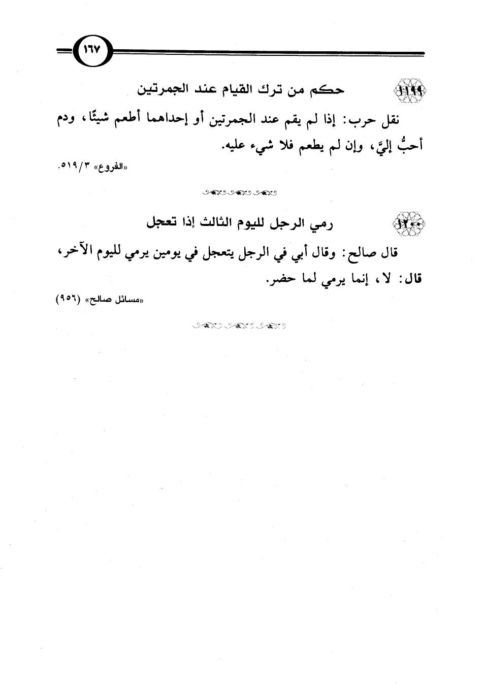 قال صالح: وقال أبي في الرجل يتعجل في يومين يرمي لليوم الآخر، قال: لا، إنما يرمي لما حضر.