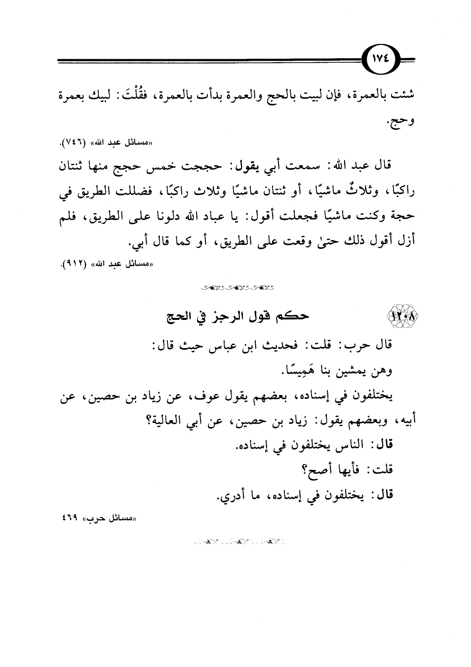 قال حرب: قلت: فحديث ابن عباس حيث قال: