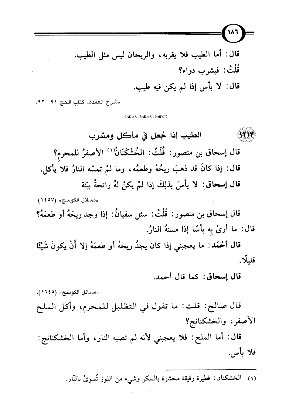 قال إسحاق بن منصور: قُلْتُ: الخُشْكَنَانُ (¬1) الأصفرُ للمحرمِ؟