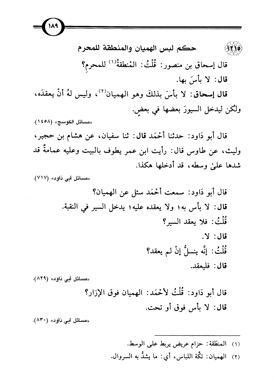 قال أبو داود: سمعت أحْمَد سئل عن الهميان؟