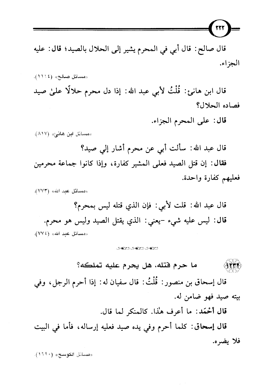 قال عبد اللَّه: قلت لأبي: فإن الذي قتله ليس بمحرم؟