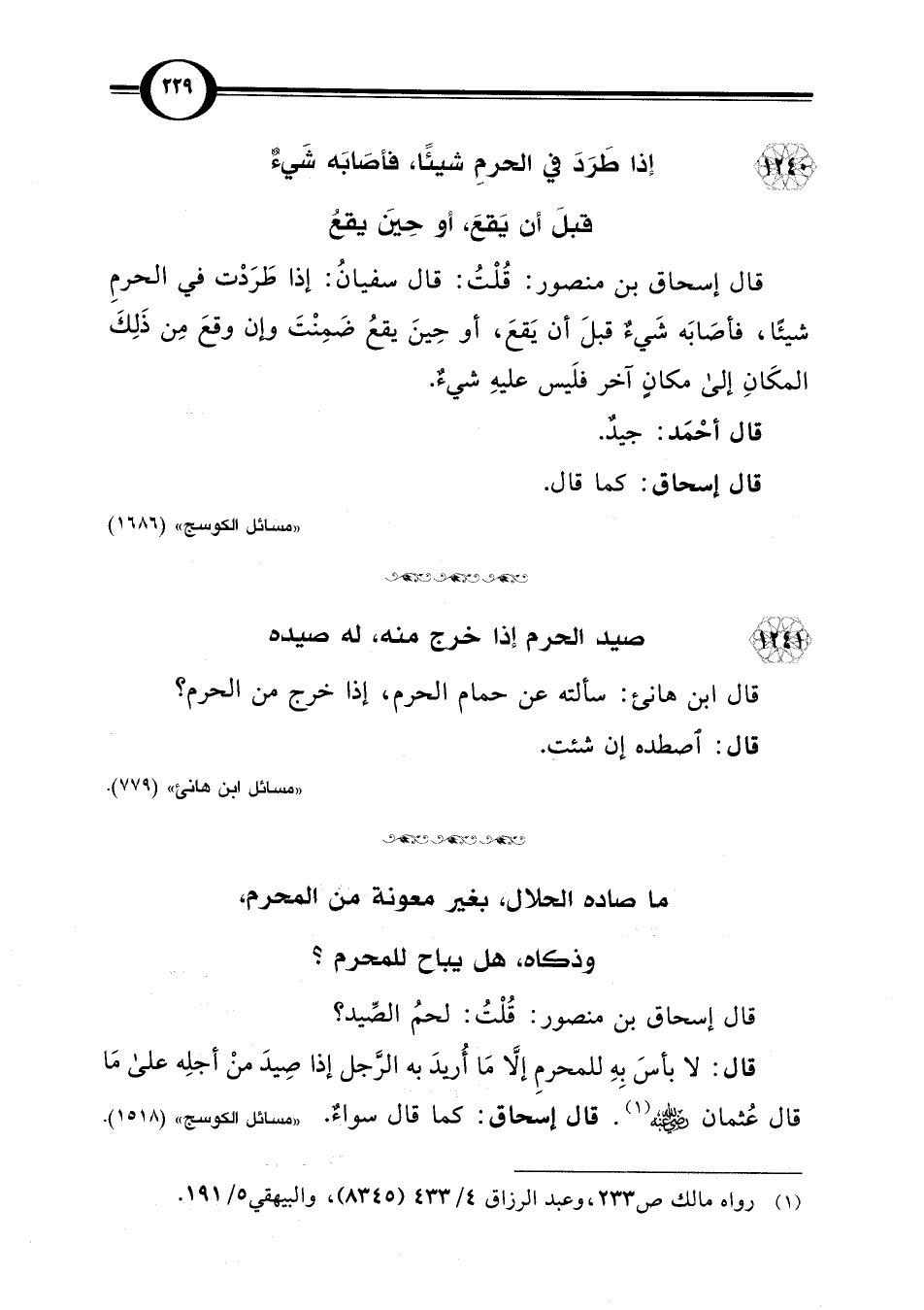 قال إسحاق بن منصور: قُلْتُ: لحمُ الصِّيد؟