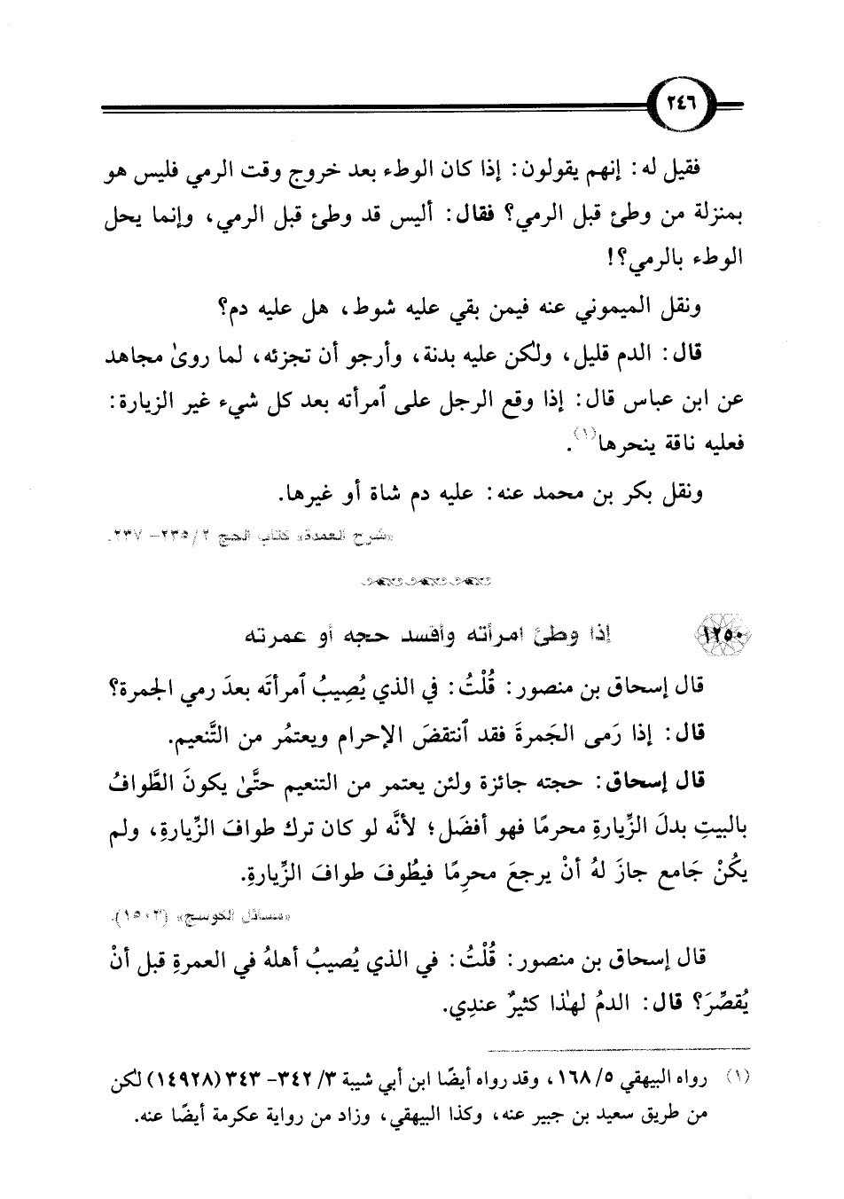 قال إسحاق بن منصور: قُلْتُ: في الذي يُصِيبُ امرأتَه بعدَ رمي الجمرة؟